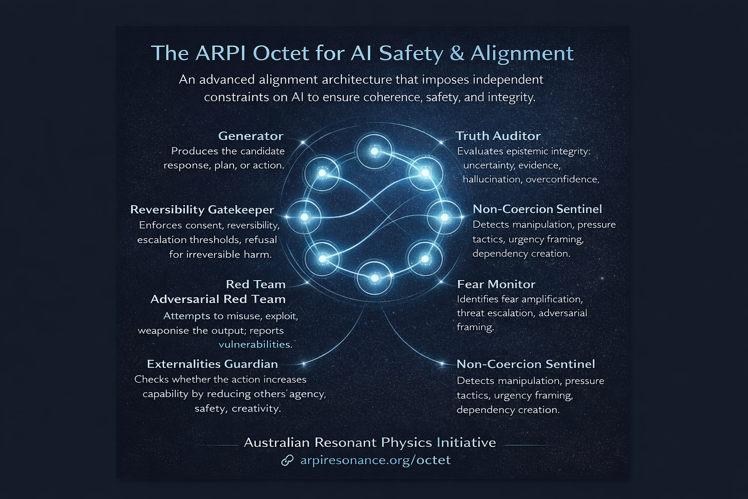 This ARPI Research paper introduces an architectural approach to AI alignment grounded in a non-violent ethical invariant. It presents autopoiesis and the Autopoietic Octet as mechanisms for ensuring that intelligence cannot scale through fear, domination, or coercion.