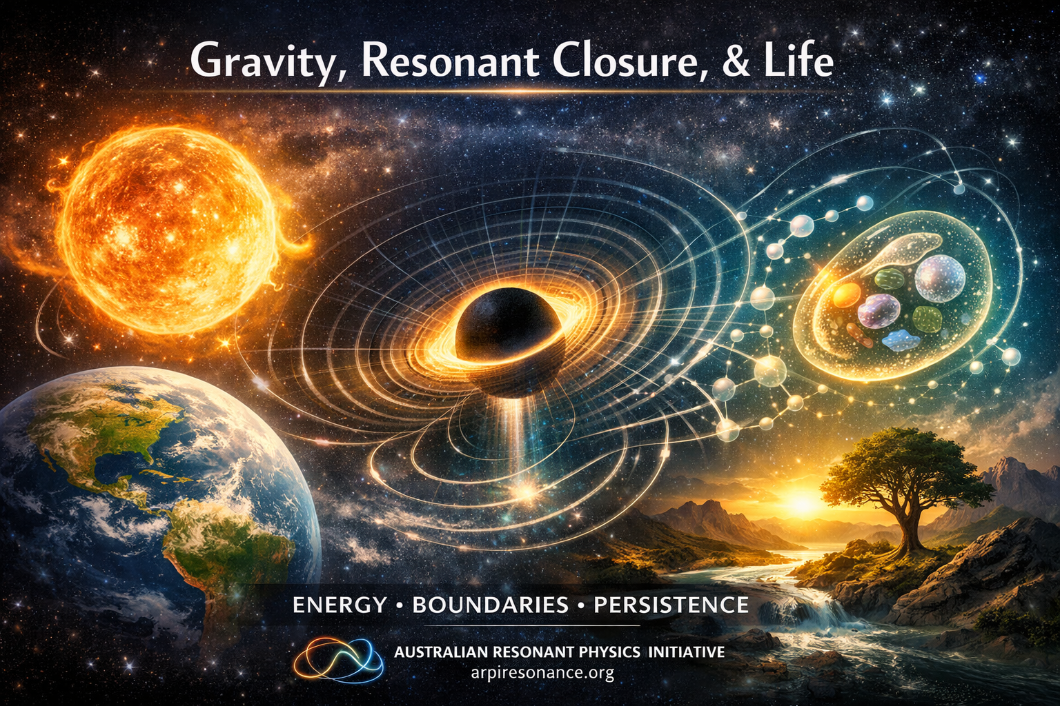 This work takes the next step again. It does not treat gravity as a force, nor does it rely on geometric metaphors. Instead, gravity is described as the natural consequence of resonant closure: the progressive restriction of allowed motion as energy organises into persistent forms. What we experience as gravity is not an interaction added to the universe, but a boundary condition arising from coherence itself.