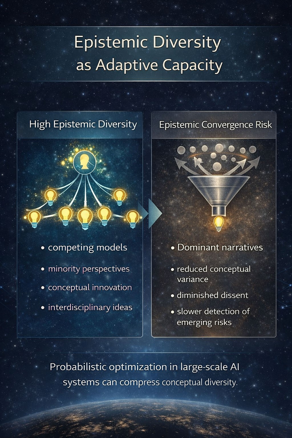 If AI systems become the dominant epistemic infrastructure while compressing conceptual variance, societies may lose the intellectual diversity required to recognise and respond to planetary boundary stress in time.