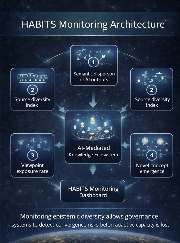 The monitoring framework proposed here provides HABITS with a practical method for detecting convergence within AI-mediated knowledge systems before it becomes irreversible.