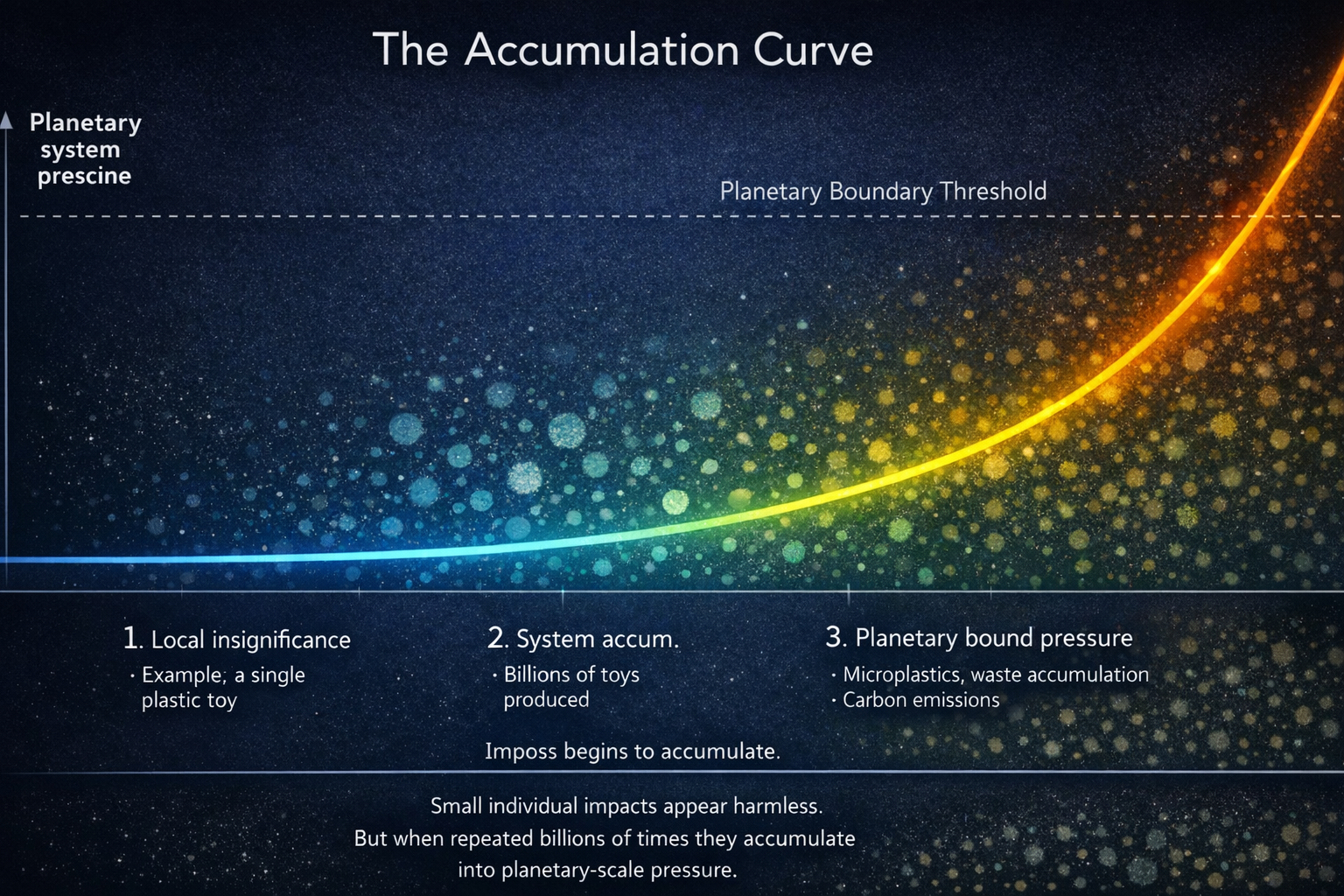 To remain within planetary boundaries, decision systems must evaluate not only the impact of individual actions but also their cumulative effect across the entire system.